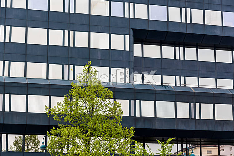 Beschreibung Die Fassade von einem Bürohaus in einer Stadt. RLB - Raiffeisenlandesbank in Linz OÖ.
