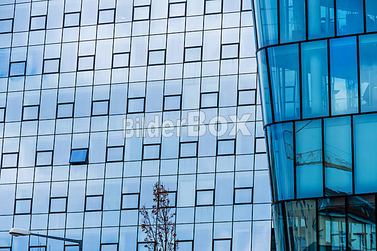 Beschreibung Die Fensterfront eines modernen Gebäudes für Büros