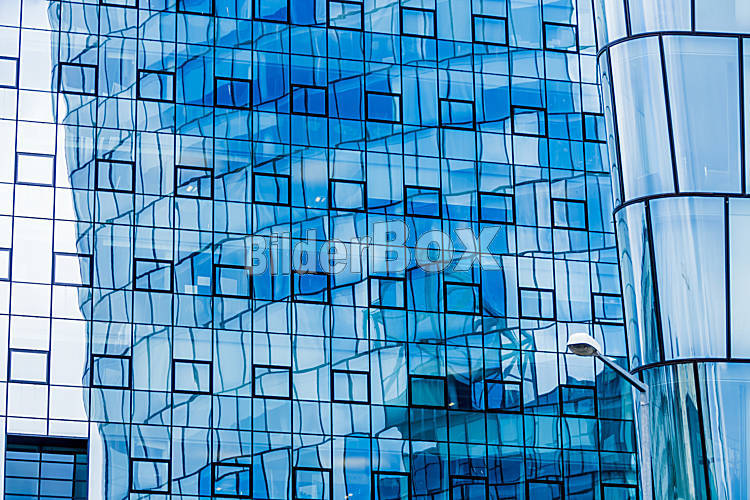 Beschreibung Die Fensterfront eines modernen Gebäudes für Büros