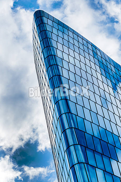 Beschreibung Die Fensterfront eines modernen Gebäudes für Büros