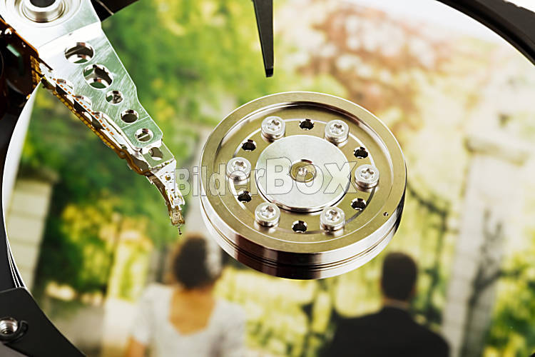 Beschreibung Die Festplatte eines Computers mit einem Filmstreifen