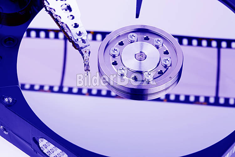 Beschreibung Die Festplatte eines Computers mit einem Filmstreifen
