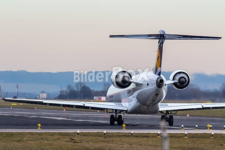 Beschreibung Flugzeug auf der Startbahn eines Flughafens. Bereit zum Start
