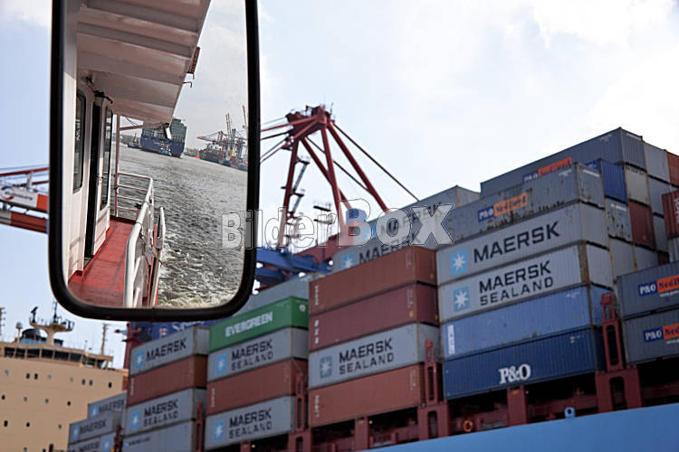 Beschreibung Containerschiffe im Hafen von Hamburg in Deutschland, Europa
