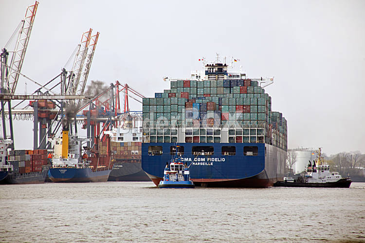 Beschreibung Containerschiffe im Hafen von Hamburg in Deutschland, Europa