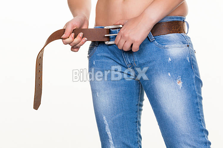 Beschreibung Eine junge Frau muss ihren Gürtel enger schnallen. Symbolbild für Schulden, Staatsschulden und Privatkonkurs