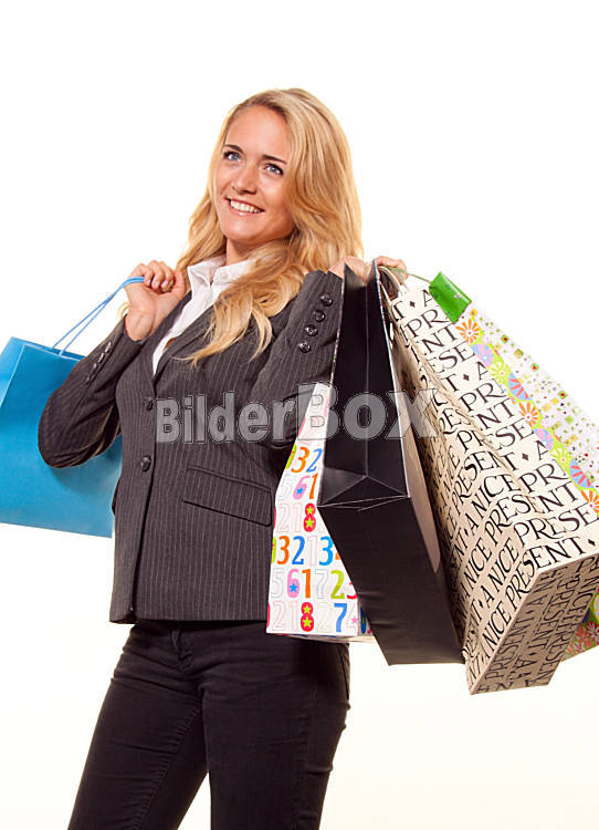Frau beim Einkaufen mit vielen Einkaufstaschen