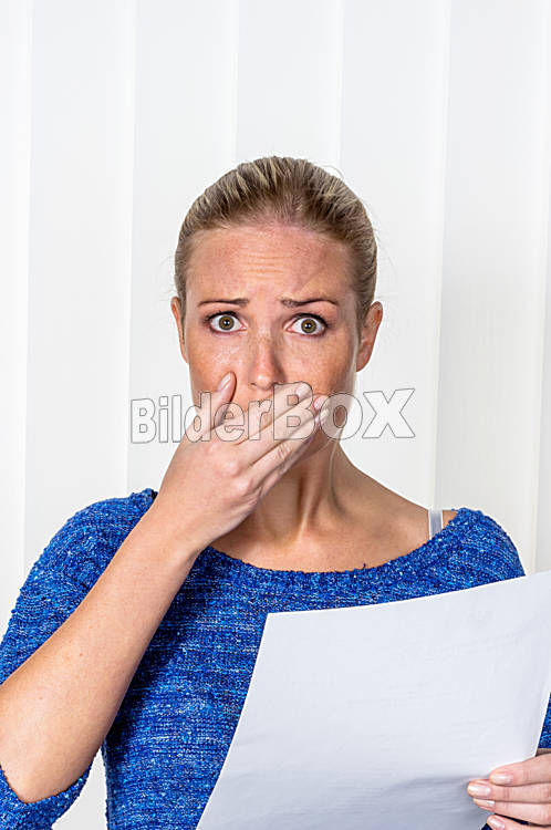 Beschreibung Eine junge Frau bekommt schlechte Nachrichten in einem Brief mit der Post