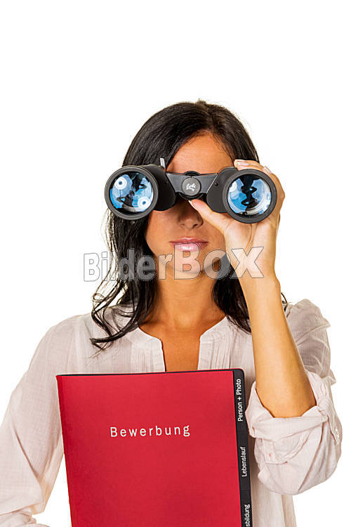 Beschreibung Eine junge Frau mit einer Bewerbungsmappe auf der Suche nach einer Arbeitsstelle