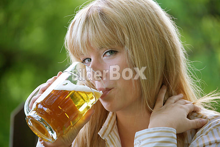 Beschreibung Frau mit Bierglas [ (c) www.BilderBox.com, Erwin Wodicka, Siedlerzeile 3, A-4062 Thening, Tel. + 43 676 5103678.Verwendung nur gegen HONORAR, BELEG, URHEBERVERMERK nach AGBs auf bilderbox.com]