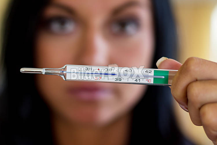 Frau mit Fieberthermometer