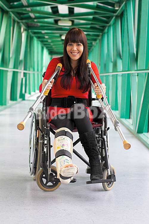 Beschreibung Junge Frau mit Gipsbein