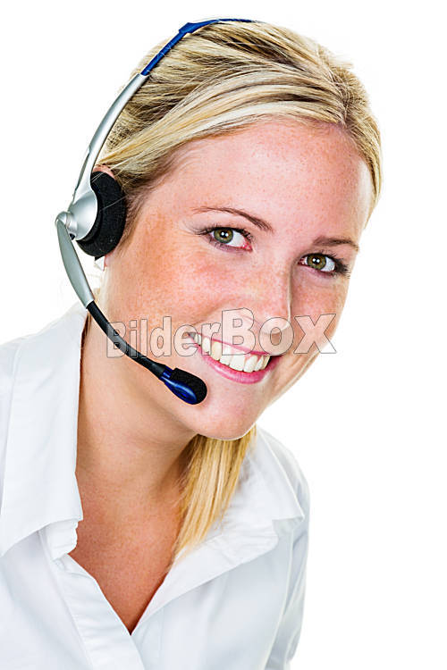 Frau mit Headset im Kundenservice