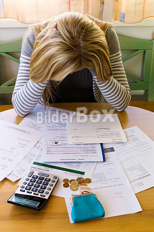 Frau mit Schulden und Rechnungen