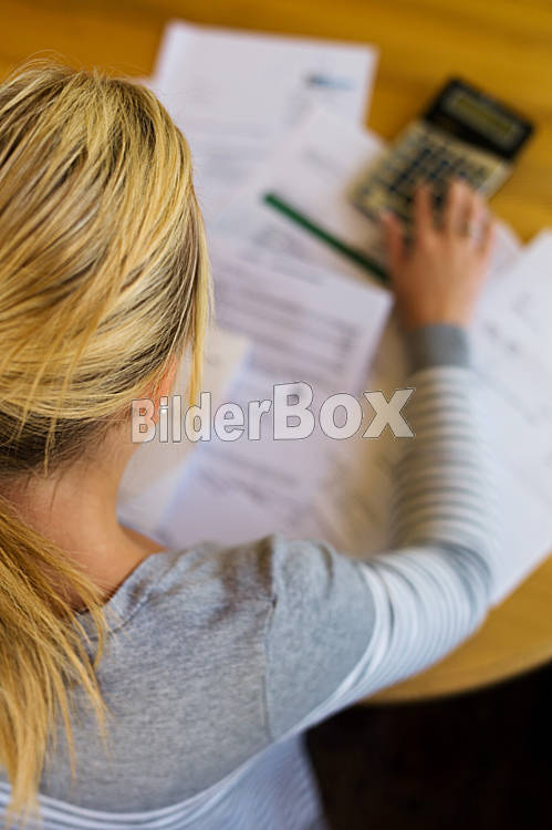 Frau mit Schulden und Rechnungen