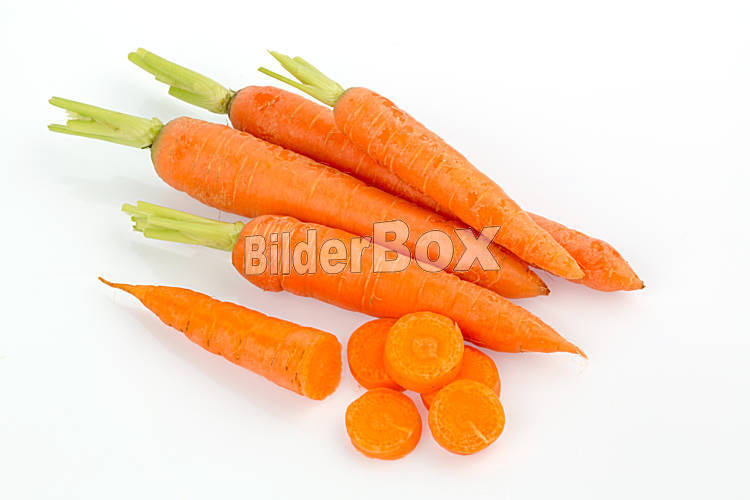 Beschreibung Möhren aus biologischem Anbau liegen auf weißem Hintergrund. Frisches Obst und Gemüse ist immer gesund.