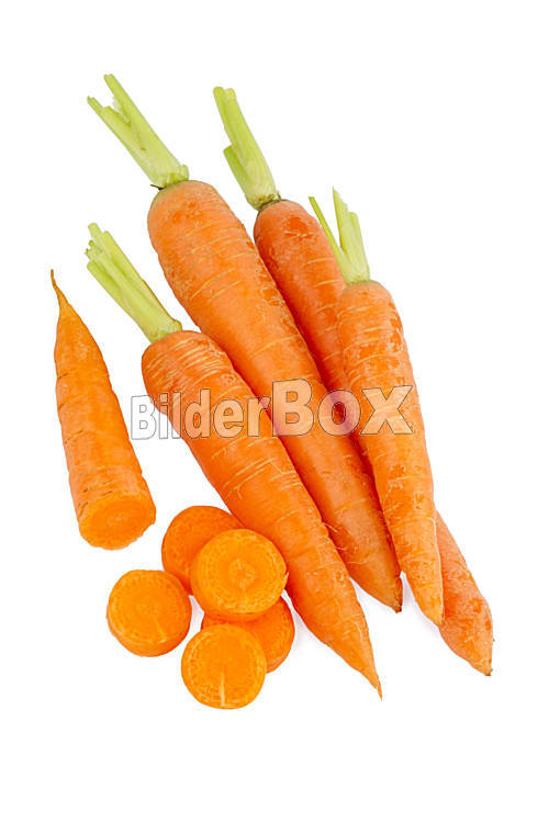 Beschreibung Möhren aus biologischem Anbau liegen auf weißem Hintergrund. Frisches Obst und Gemüse ist immer gesund.