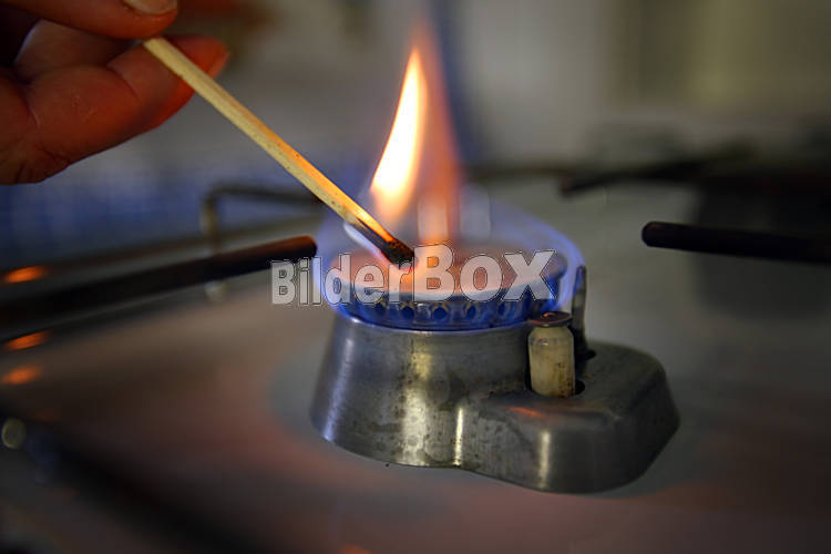 Beschreibung Flamme eines Erdgas Ofens wird angezündet