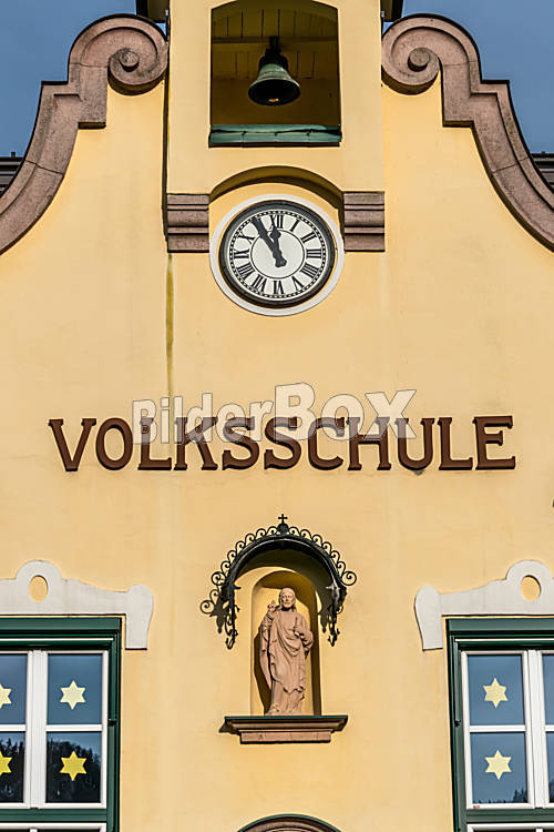 Beschreibung Gebäude Volksschule Fassade, Symbol für Bildung, Schulreform, Schulpflicht