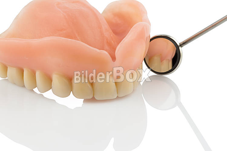 Beschreibung Gebiss und Mundspiegel, Symbolfoto für Zahnersatz, Diagnostik und Zuzahlung