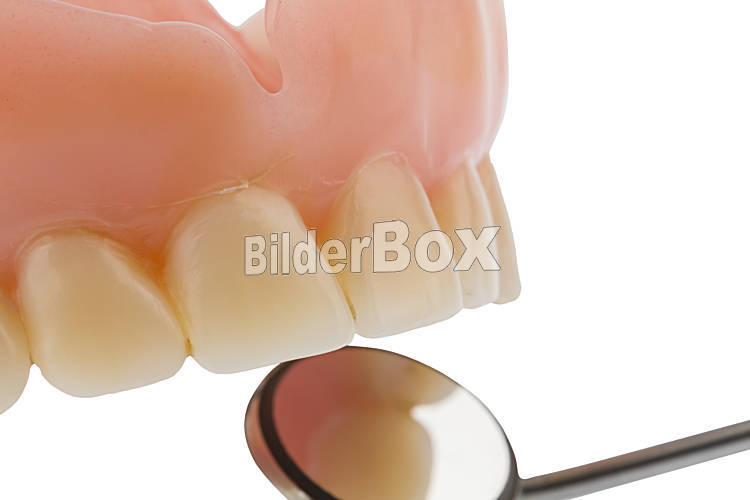 Beschreibung Gebiss und Mundspiegel, Symbolfoto für Zahnersatz, Diagnostik und Zuzahlung