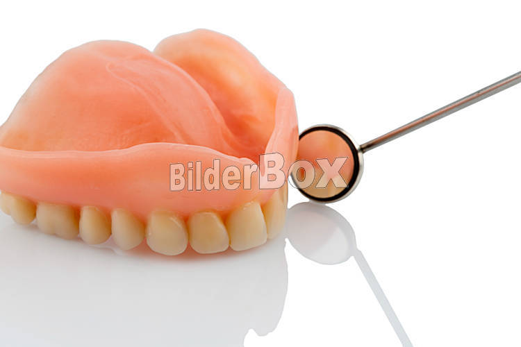 Beschreibung Gebiss und Mundspiegel, Symbolfoto für Zahnersatz, Diagnostik und Zuzahlung
