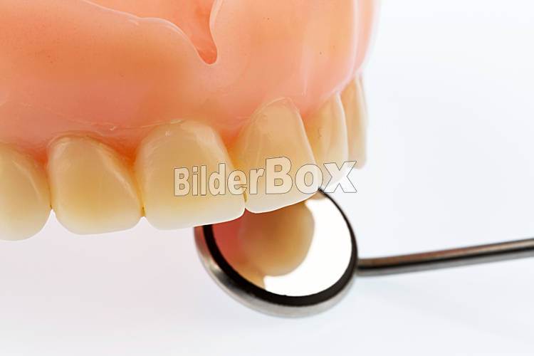 Beschreibung Gebiss und Mundspiegel, Symbolfoto für Zahnersatz, Diagnostik und Zuzahlung