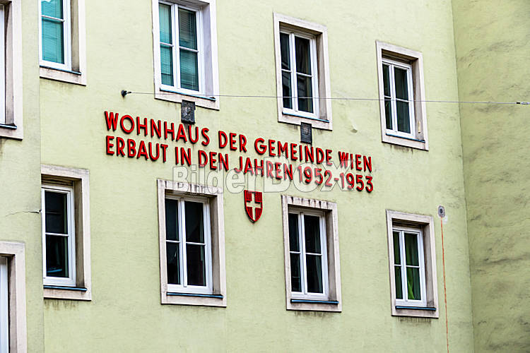 Beschreibung Eine Wohnhausanlage in Wien. Sozialer Wohnbau der Stadtgemeinde