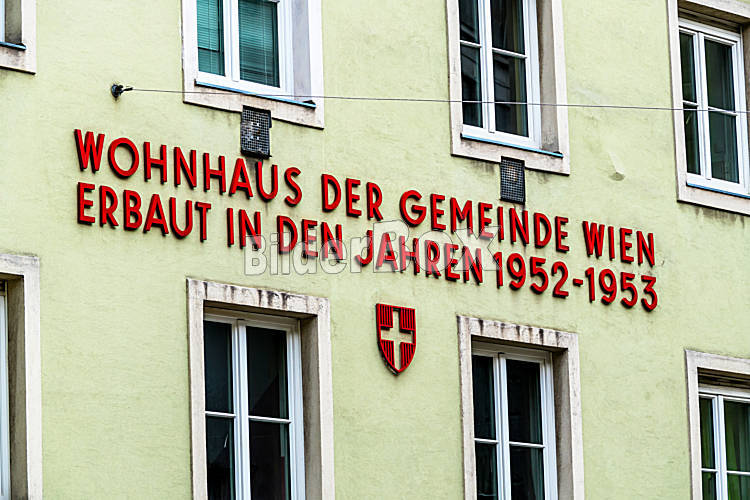 Beschreibung Eine Wohnhausanlage in Wien. Sozialer Wohnbau der Stadtgemeinde