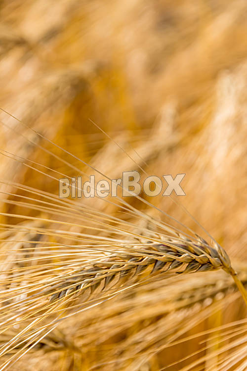 Beschreibung Ein Getreidefeld mit Gerste wartet auf die Ernte. Symbolfoto für Landwirtschaft und gesunde Ernährung.