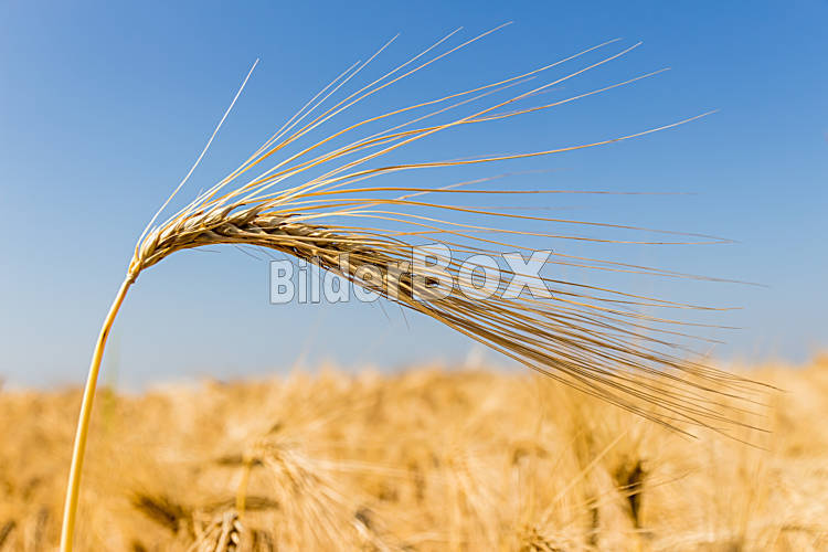 Beschreibung Ein Getreidefeld mit Gerste wartet auf die Ernte. Symbolfoto für Landwirtschaft und gesunde Ernährung.