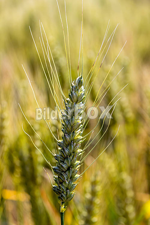 Beschreibung Ein Getreidefeld mit Gerste wartet auf die Ernte. Symbolfoto für Landwirtschaft und gesunde Ernährung.