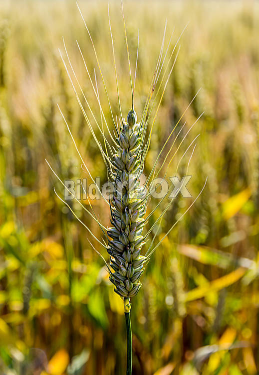 Beschreibung Ein Getreidefeld mit Gerste wartet auf die Ernte. Symbolfoto für Landwirtschaft und gesunde Ernährung.
