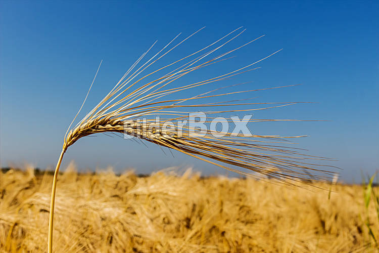 Beschreibung Ein Getreidefeld mit Gerste wartet auf die Ernte. Symbolfoto für Landwirtschaft und gesunde Ernährung.