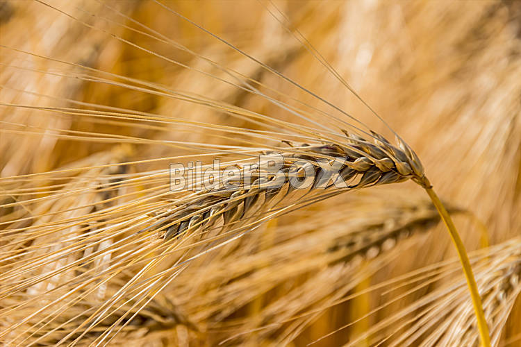 Beschreibung Ein Getreidefeld mit Gerste wartet auf die Ernte. Symbolfoto für Landwirtschaft und gesunde Ernährung.