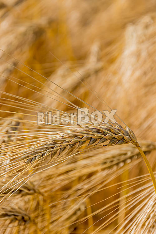 Beschreibung Ein Getreidefeld mit Gerste wartet auf die Ernte. Symbolfoto für Landwirtschaft und gesunde Ernährung.