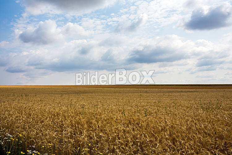 Beschreibung Ein Feld mit Getreide im Sommer. Ernte in der Landwirtschaft