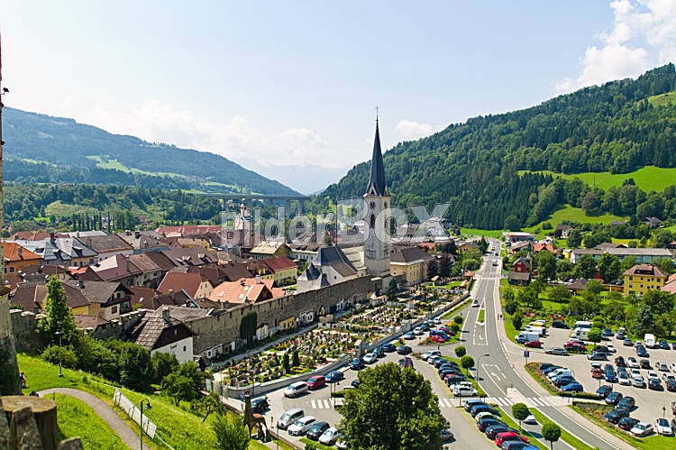 Beschreibung Burg in Gmünd, Kärnten, Österreich. Strasse zum Maltastausee