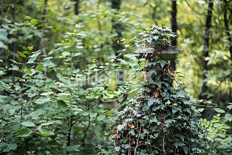 Beschreibung Mit Pflanzen überwachsene Gräber auf einem Friedhof. Symbolbild für vergessen oder keine nachkommen.