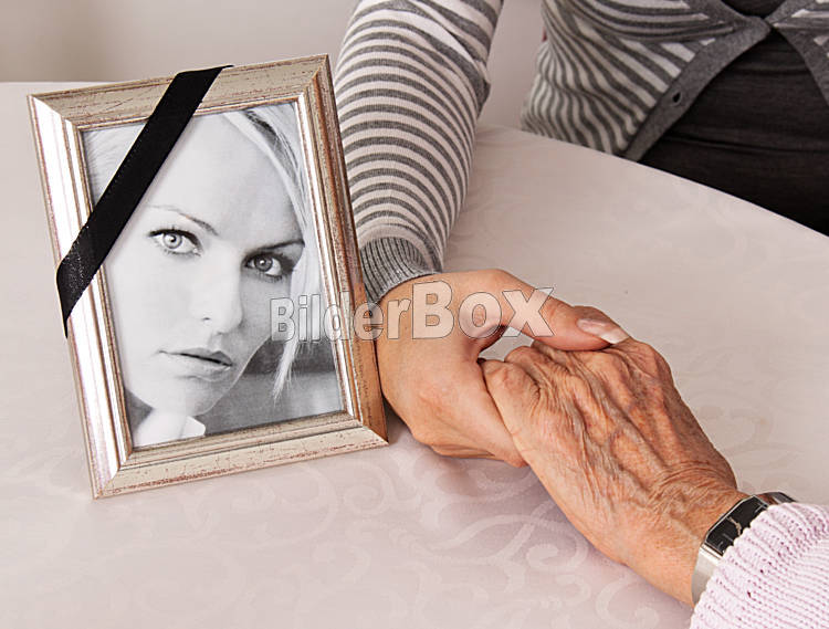 Beschreibung Haltende Hände zum Trost. Trauer bei Todesfall.