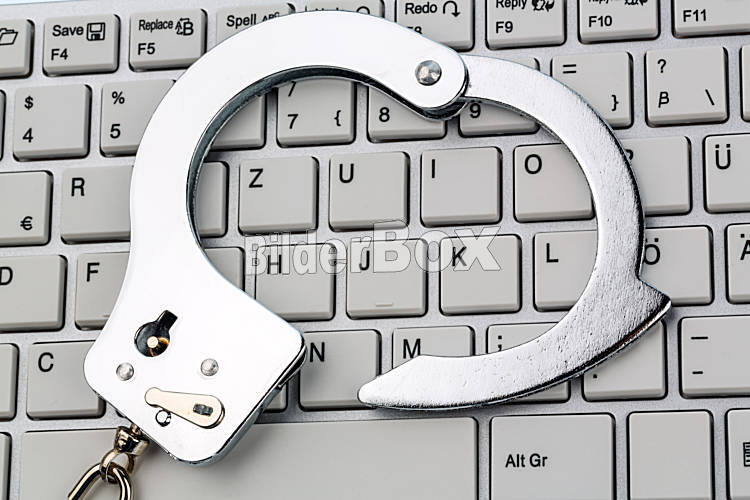 Handschellen auf Computer Tastatur