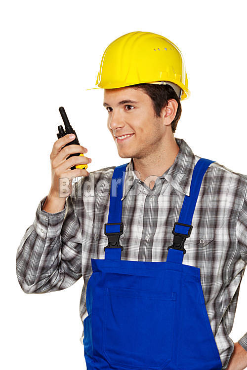 Beschreibung Junger Handwerker - Klemptner - Bauarbeiter vor weißem Hintergrund