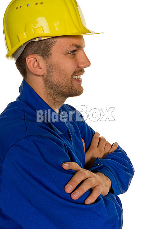 Beschreibung Ein Arbeiter in einem Gewerbebetrieb ( Handwerker ) mit Helm