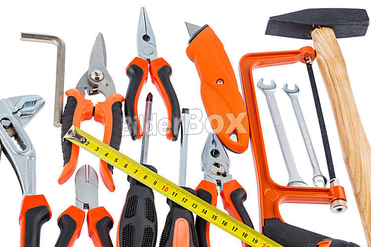 Beschreibung Handwerkzeug, Symbolfoto für Bauen, Handwerk, Heimwerken