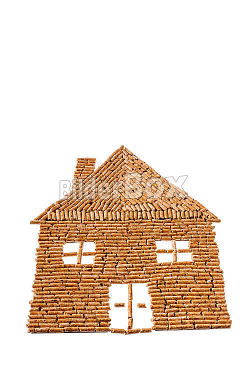 Beschreibung Ein Haus wurde aus Pellets für die Heizung gebaut. Alternative und nachhaltige Energie zum heizen