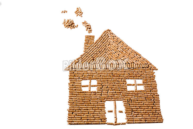 Beschreibung Ein Haus wurde aus Pellets für die Heizung gebaut. Alternative und nachhaltige Energie zum heizen