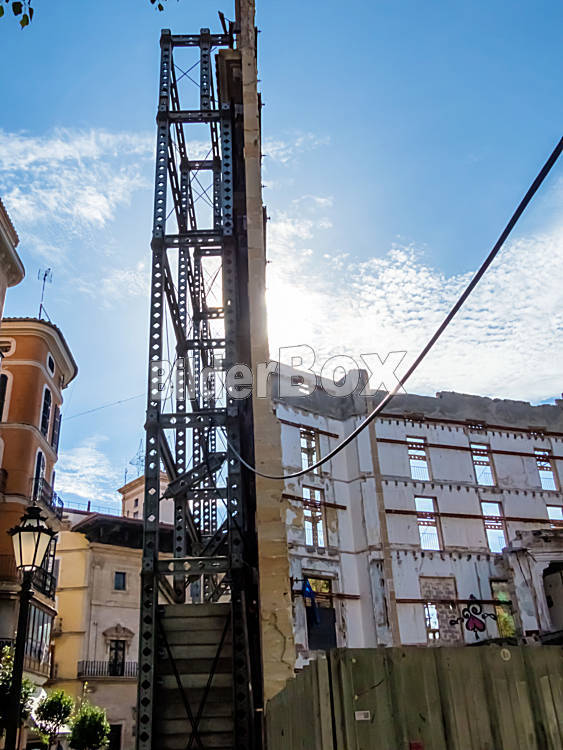 Beschreibung Die Fassade eines Hauses das umgebaut wird steht unter Denkmalschutz und muss stehen bleiben.