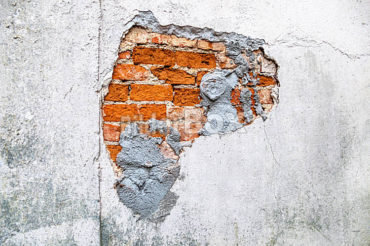 Beschreibung Hauswand kaputtes Mauerwerk, Symbol für Verfall, Sanierungsbedarf und Schaden