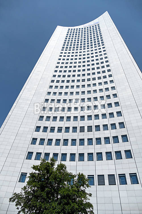 Beschreibung Bürohochhaus in Leipzig, Deutschland. Cityhochhaus am Augustusplatz