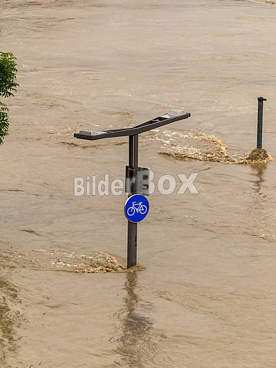 Beschreibung Hochwasser 2013. Linz, Österreich. Überflutung und Überschwemmung